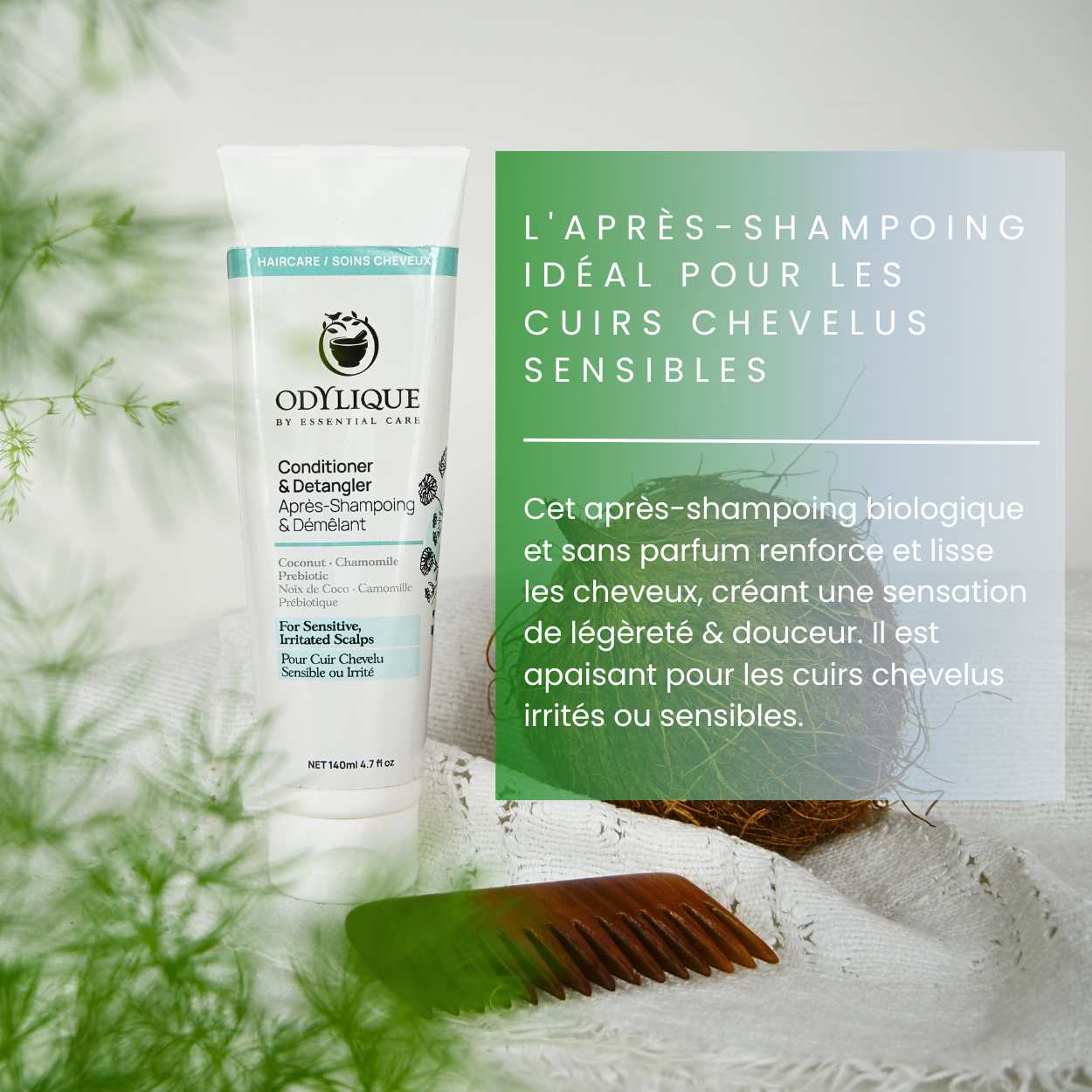 Merci pour ce retour positif sur notre Après Shampoing Démêlant à la Coco, Camomille & Prébiotique qui apaise votre cuir chevelu irrité. Nous sommes fiers de proposer un après-shampoing original qui démêle, mais est surtout un élément clé pour avoir un cuir chevelu en bonne santé.